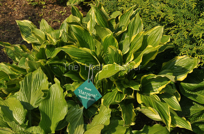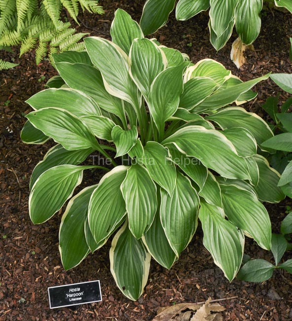 36 inches wide with moderately wavy foliage. The purple flowers bloom