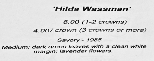 of Savory's Gardens in Minnesota, this cultivar of unidentified parentage forms a medium to