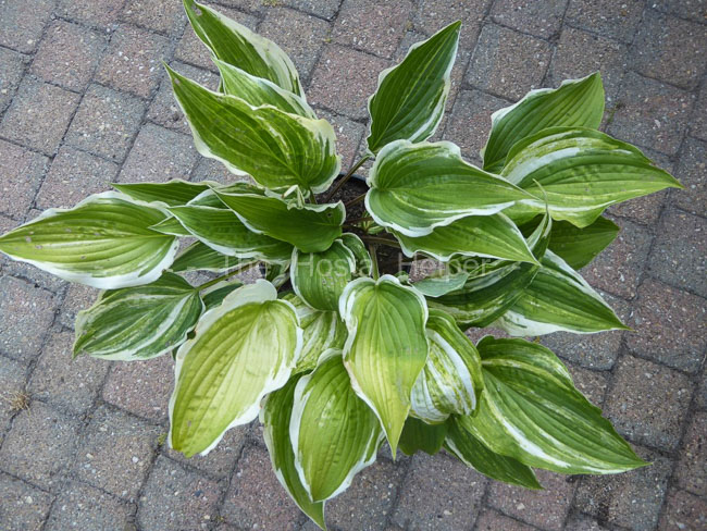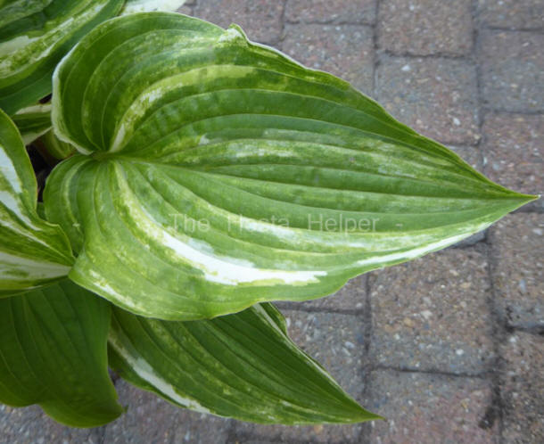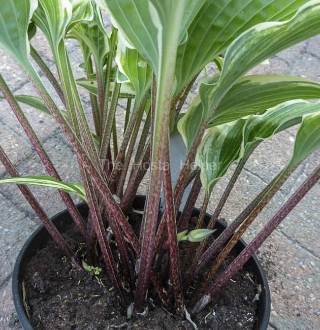 Originated in 2018 by Ronny Van Keer of Belgium, this non-registered cultivar is a hybrid of H. 'Valley's Top' × H. 'Sky Dancer'. It is a medium size hosta with chartreuse colored foliage with streaked variegation. The petioles are red in color.