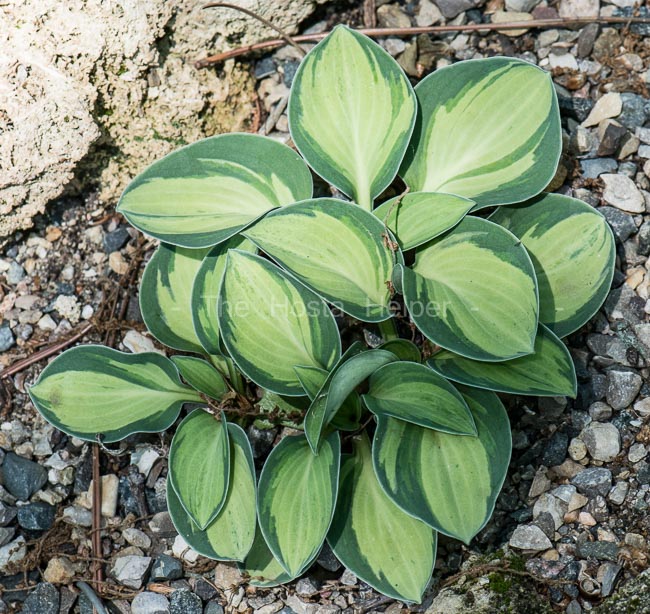 reports 'Pure Heart' and 'Desert Mouse' are the same hosta. Also, 'Holy Mouse Ears' comes up with plain blue-green leaves; after a month or so, a