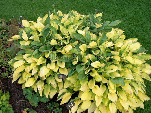 This medium size (17 inches high) plant is a sport of H. 'Fortunei' and has smooth textured foliage with average substance. It bears