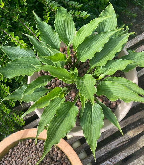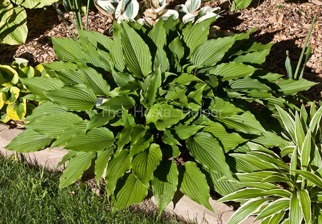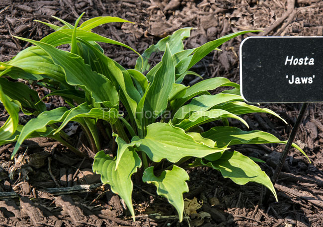 This non-registered cultivar is a seedling of unidentified parentage from Alttara Scheer of Connecticut. It has dark green foliage that is heavily rippled and forms a dense, fast growing, medium size mound about 12 inches high 'Jaws' tolerates sun well and bears lavender flowers in July.