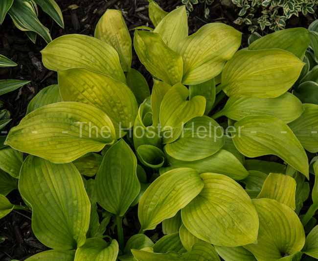 A hybrid of H. 'Sum and Substance', this cultivar was registered by Randy Goodwin of Indiana in 1996. It grows into a medium size of one foot high by 30 inches wide with slightly corrugated, wavy foliage. The pale lavender flowers bloom in late July.