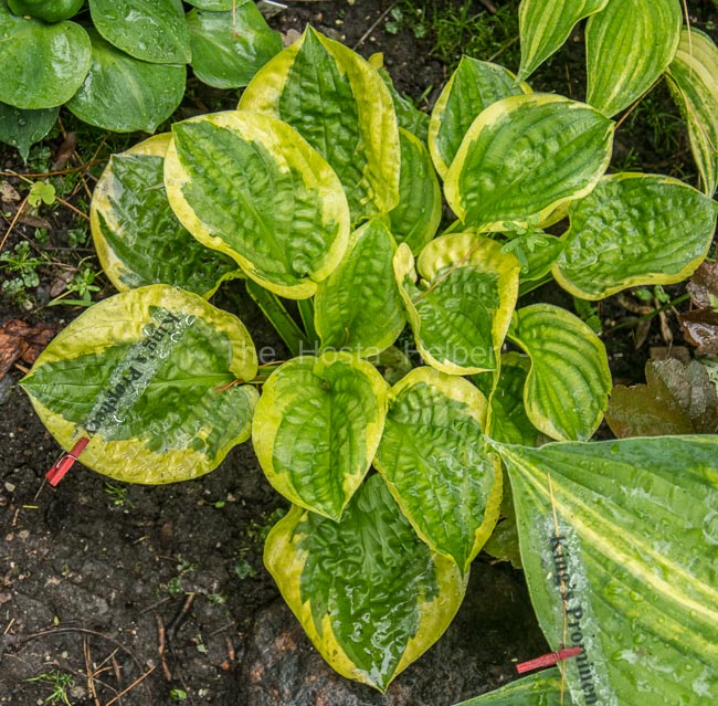 Originated by Herb and Gladys King of Wisconsin, this non-registered cultivar is of unidentified parentage. It is a small size hosta with slightly wavy, heavily corrugated green foliage that has a creamy yellow marginal variegation.