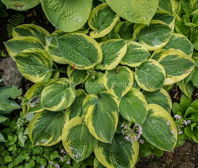 Originated by Herb and Gladys King of Wisconsin, this non-registered cultivar is of unidentified parentage. It is a small size hosta with green foliage that has a creamy yellow marginal variegation. The leaves are moderately corrugated.