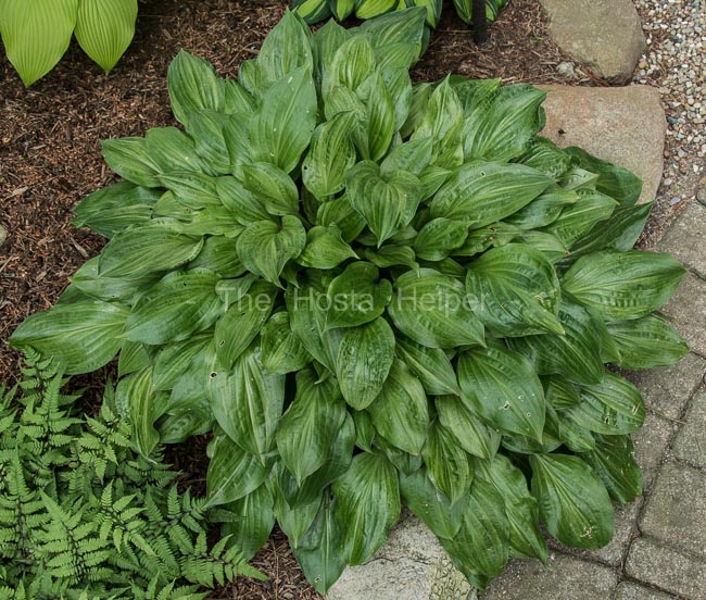 1999. The medium size, 12 inch high hosta spreads about 30 inches wide with