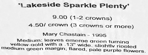 Lakeside Acres Nursery in Tennessee registered this cultivar of unidentified parentage in 1995. The mound of a semi-upright form is about a foot tall by 29
