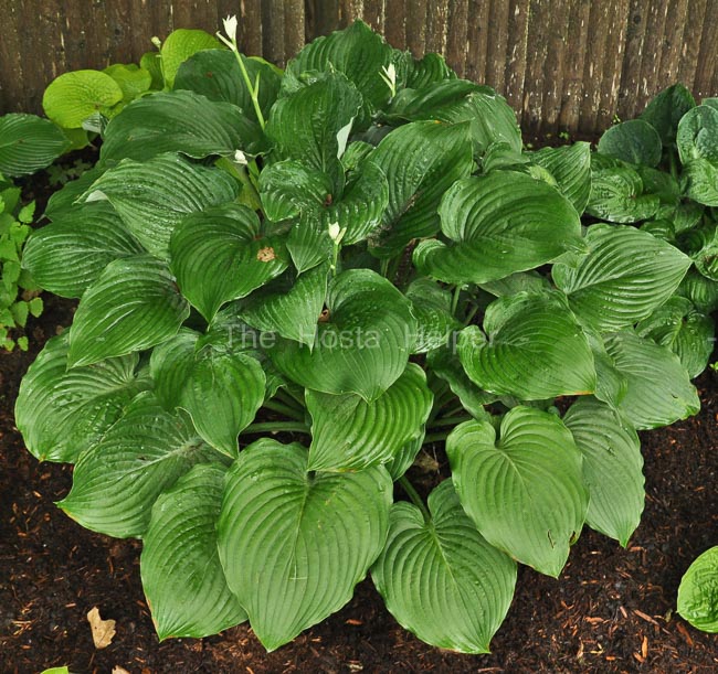 A cross of H. 'Lakeside Ripples' × H. 'Sagae' this hosta forms a large size mound of foliage. It was registered in 1997 by