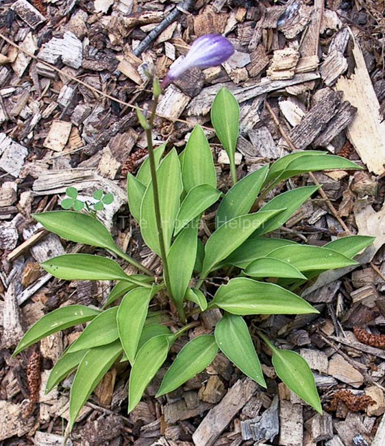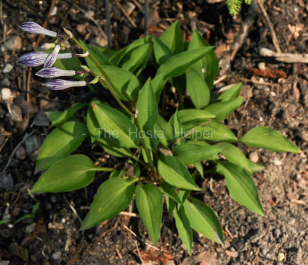 This is a self-pollinated seedling of H. venusta that was registered by Clarence Owens of Michigan in 1990. It forms a miniature size mound of green foliage and has pale lavender flowers in July.