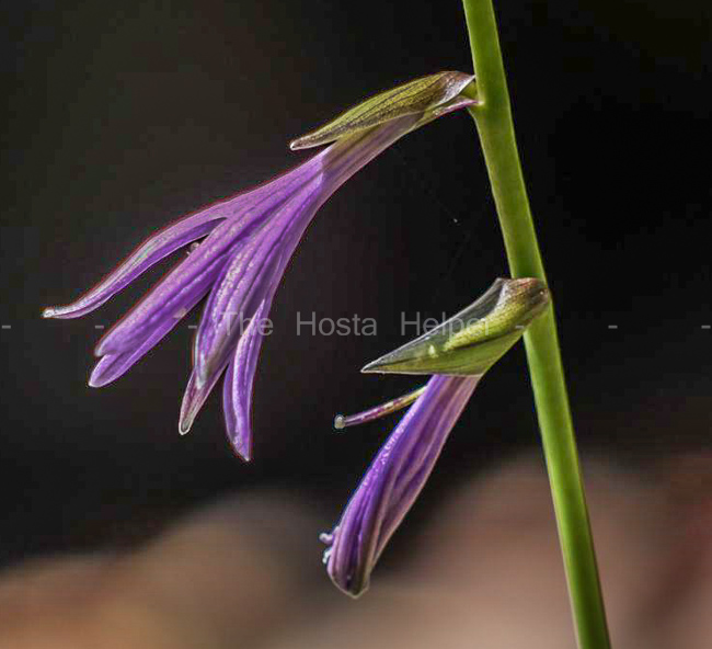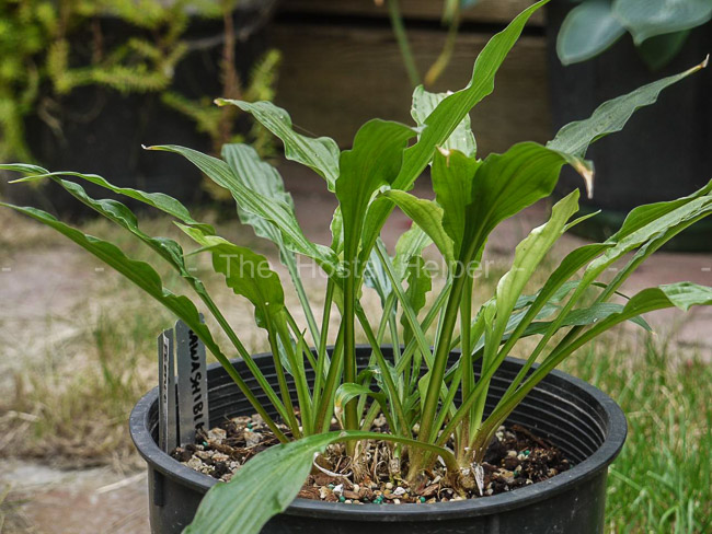 This is a non-registered cultivar from Pieter Klapwijk of Canada which is a hybrid of H. 'Hacksaw' × H. 'Ray of Hope'. It is a small size plant with an upright habit. The dark green leaves are lanceolate and wavy on the edges. The lavender flowers bloom from August into September on extremely long scapes which tend to bend over. It sets viable seeds.