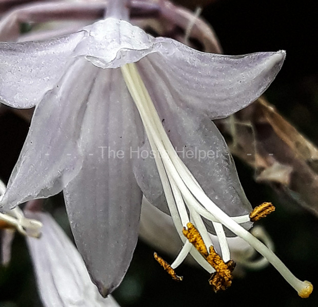 This hybrid of a white backed H. kikutii and a white backed H. longipes was developed by Hajime Sugita of Japan and registered by Peter Ruh of Ohio in 1997. It forms a medium size (14 inches high by 30 inches wide) mound of deeply veined foliage of above average substance. The plant has pale lavender, bell-shaped flowers in late August to September followed by viable seeds.