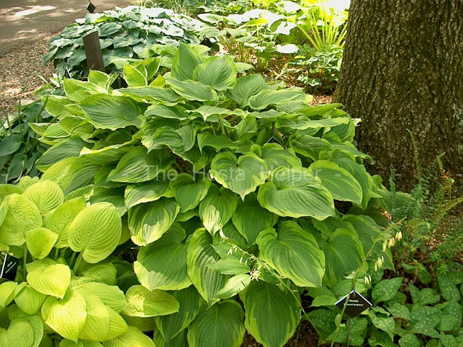 Gold'. The large size (22 inches high by 41 inches wide) plant has thick leaves and near