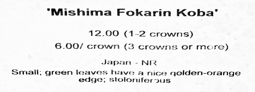 According to The Hostapedia by Mark Zilis (2009), "...listed under a variety of names, including 'Mishima Fukurin Koba', 'Mishima Fukurin', and H. albomarginata 'Mishima Fukurin'. The plant being sold is the same as 'Koriyama'."