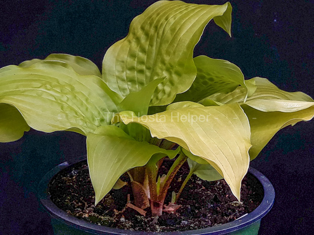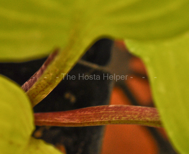 size hosta with light green leaves and bright red