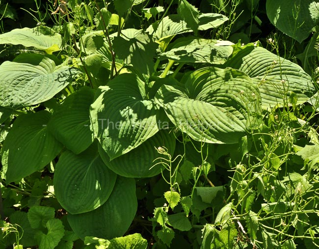 This seedling selection from Van Wade of Wade and Gatton Nursery (Closed 2019) of Ohio is a non-registered cultivar that grows into a giant size hosta about 3 feet tall and 82 inches wide. The leaves are deeply lobed at the base, are slightly corrugated and slightly wavy. Near white flowers bloom in late June.