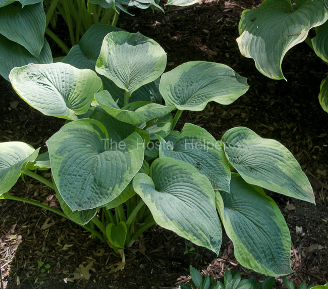 are many registered 'Frances Williams' lookalikes including H. 'Aurora Borealis', H. 'Squash Edge', 'Holly's Green and Gold', 'Golden Circles' and