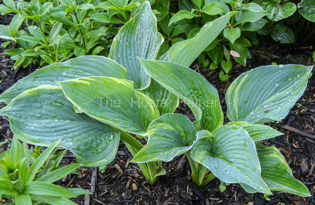 hybrid of H. 'Hearts and Flowers' × an unidentified hosta in 2012.