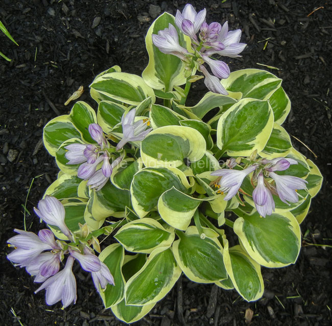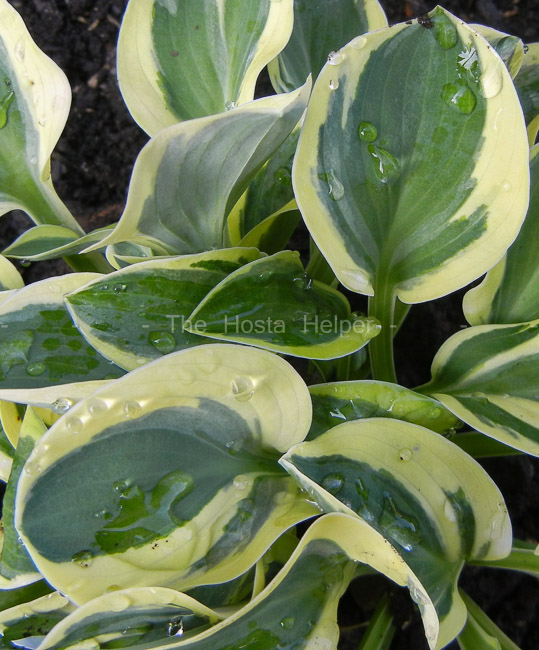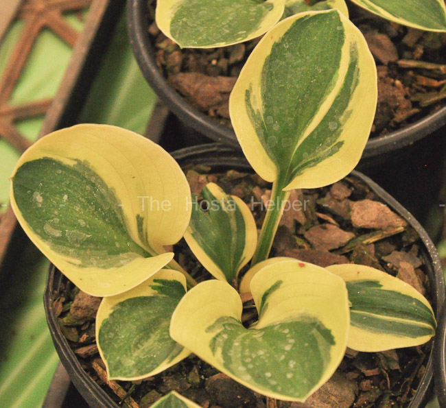 "H. 'One Iota', 'Mighty Mouse' and 'Lucky Mouse' emerge in the spring with bright creamy-yellow margins that turn creamy white by summer. All have very similar foliage characteristics, often indistinguishable from each other unless examined carefully for minute yellowish hue difference...H. 'One Iota' and 'Lucky Mouse' appear to be the same, having a bit yellower margin than 'Mighty Mouse'. This would be expected since 'Lucky Mouse' sported from 'One Iota Supreme' that reportedly sported from 'One Iota'."