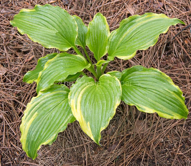 It is a green hosta with a yellow marginal variegation.