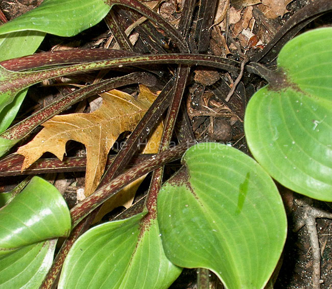 H. longipes hypoglauca. It forms a medium size (11 inches high by 30 inches wide) mound of shiny green foliage and dark red petioles.