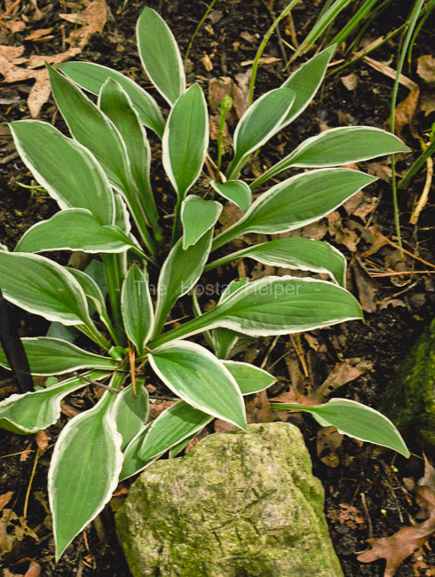 This cultivar of unidentified parentage was registered by Peter Ruh of Ohio in 1990 and re-registered with new data in 2018 to replace the former, incorrect, name Hosta sieboldii thunbergiana variegata. It forms a miniature size mound about 5 inches high by 13 inches wide with dark green, slightly undulating foliage that has a narrow white marginal variegation. Lavender flowers bloom on scapes 23 inches tall from August into September.