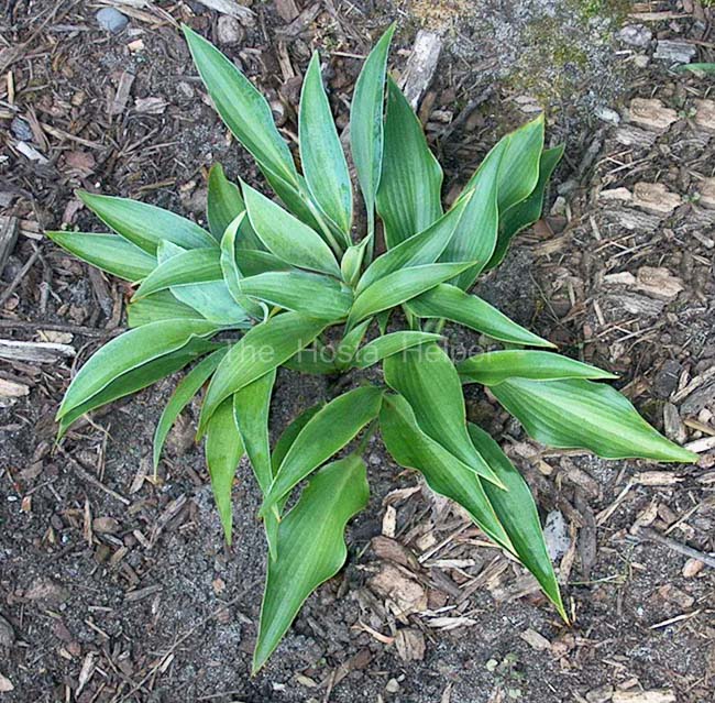 Kevin Walek (Hosta Registrar). It is a small size plant with medium green foliage that is ovate, shiny