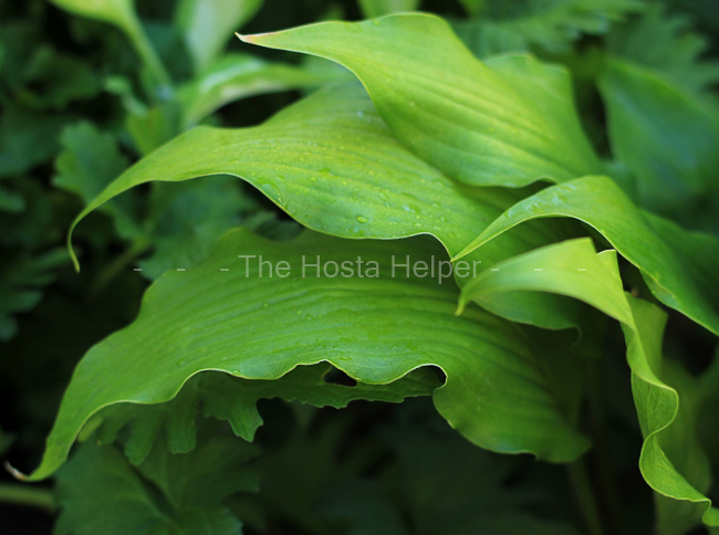 white-backed, long-tipped, ruffled green foliage. Ample