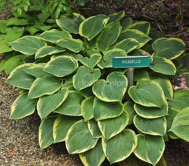 According to The Hosta Handbook by Mark Zilis (2000), "Almost any clump of 'Shenanigans' will stabilize to a green-centered, creamy-margined form. 'Picadello' is another case of a sport that eventually became more popular than its streaked mother plant."