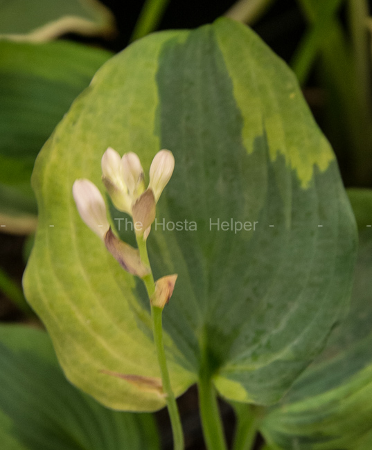 This large size cultivar is a stabilized form of H. 'Shenanigans' that was registered by Nancy Krul of Belle Gardens in Michigan in 1995. It grows to about 22 inches in height and width of 53 inches with corrugated, slightly wavy foliage. The pale lavender flowers bloom in mid-July.