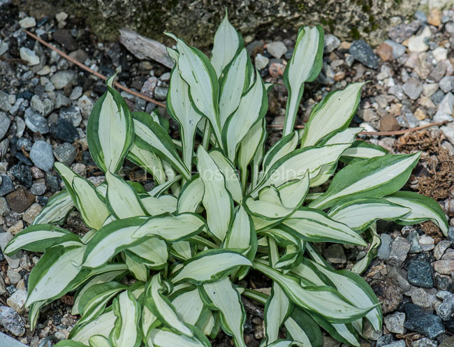 white medial (center) variegation. The leaves are moderately wavy, slightly