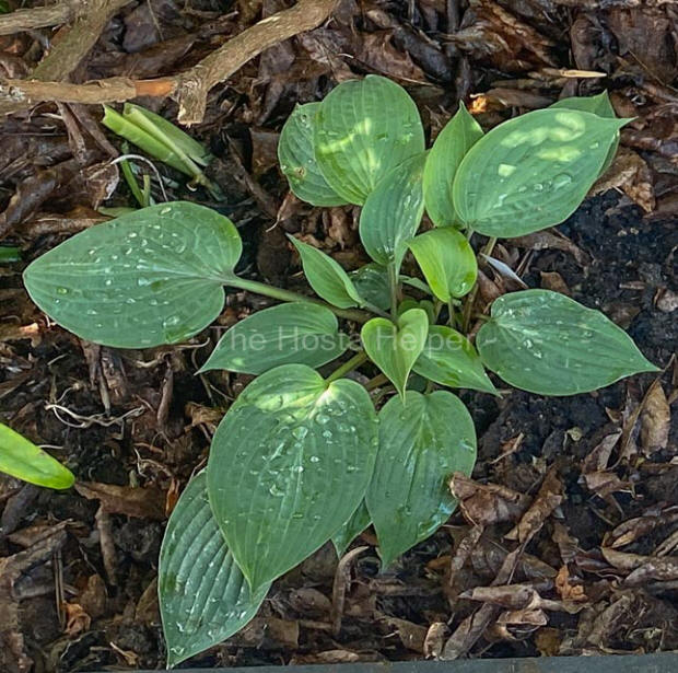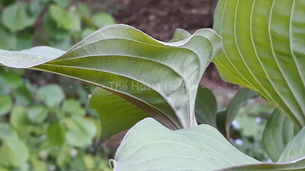 cultivar is of unidentified parentage. It is a large size hosta about 18 inches high by 40 inches wide with shiny