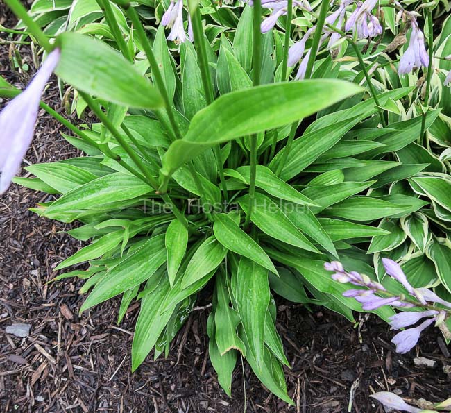This small size (10 inches high by 21 inches wide) cultivar is a seedling of H. 'Firefly' which was registered by Dr. Dick and Jane Ward of Ohio in 2015. The medium green hosta has lanceolate leaves which are flat and dull on top. Pale lavender, bell-shape flowers bloom from mid-July into August. It sets seeds but their viability was not known at the time of registration.