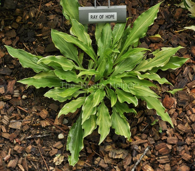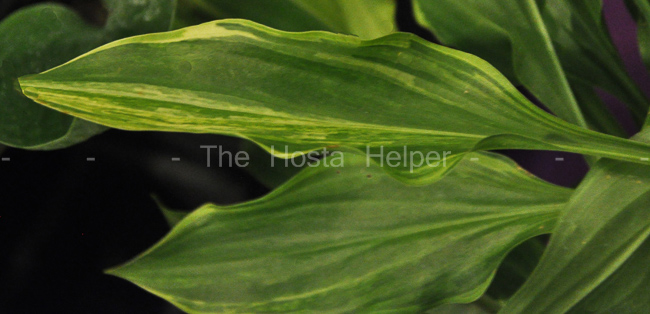 The dense mound has medium green colored, rippled, intensely wavy, heavily streaked leaves. Its