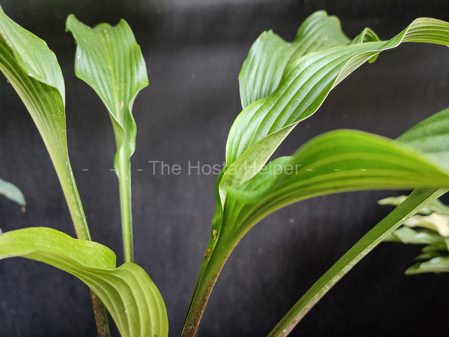 Danny Van Eechaute of Belgium registered this hybrid of H. 'Sea Octopus' × an unnamed hosta in 2011. The large size plant grows to around 20 inches in height with a spread of about 30 inches. Its leaves are medium green, slightly rippled, slightly twisted, moderately wavy and dull on top. The name comes from the intensely red petioles. Pale lavender, tubular flowers bloom from June into July. It sets viable seeds.