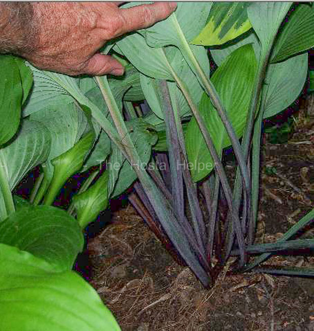 This is an upright growing, large size hosta with blue-green leaves and red to purple dotted petioles. It is a non-registered cultivar was originated by Ron Livingston of Michigan.