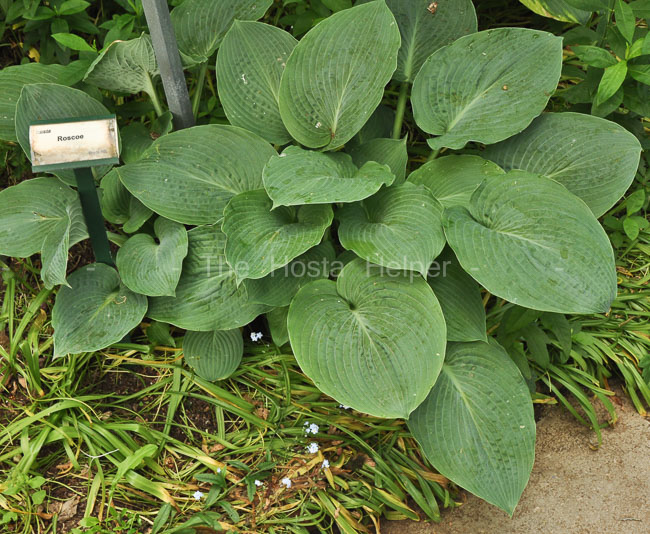 Van Wade of Wade and Gatton Nursery (Closed 2019) of Ohio registered this cross of H. 'Elegans' × H. 'Frances Williams' in 1999. The very large size (33 inches high by 56 inches wide) mound has ovate shaped leaves that are slightly wavy and have thick substance. Near white flowers begin to bloom in late June.