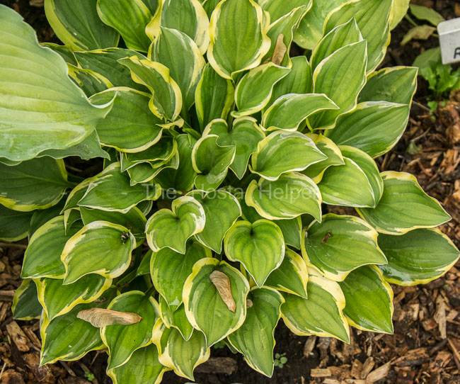 This small size cultivar of unidentified parentage is a non-registered hosta from Jerry Hadrava of Iowa. Its green leaves have misted green and white streaked variegation in the middle.