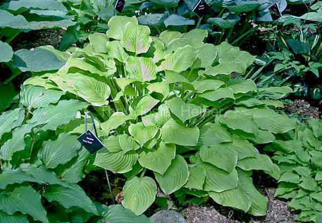 Lantis'. The foliage is slightly wavy and corrugated, ovate