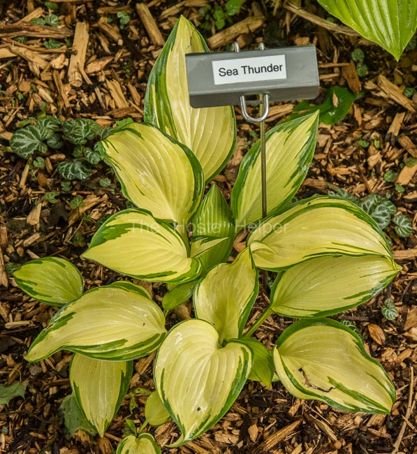 white-centered hostas with bold green borders are 'Banana Boat', 'Warwick