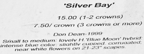 H. 'Silver Frost' × H. 'Blue Moon' hybrid was registered by Don Dean of Minnesota in 1999. The