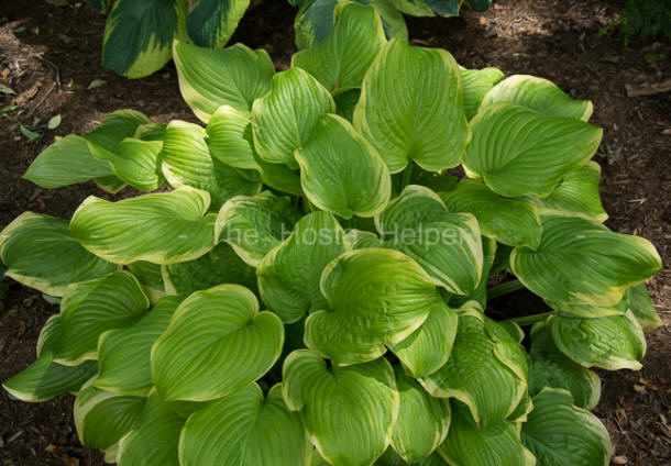 Paul Aden of New York registered this cultivar in 1980. It is a cross between H. 'Wide Brim' × H. 'Royal Rainbow'. 'Snow Cap' forms a large size (19 inches high) mound of broadly ovate, moderately cupped foliage with