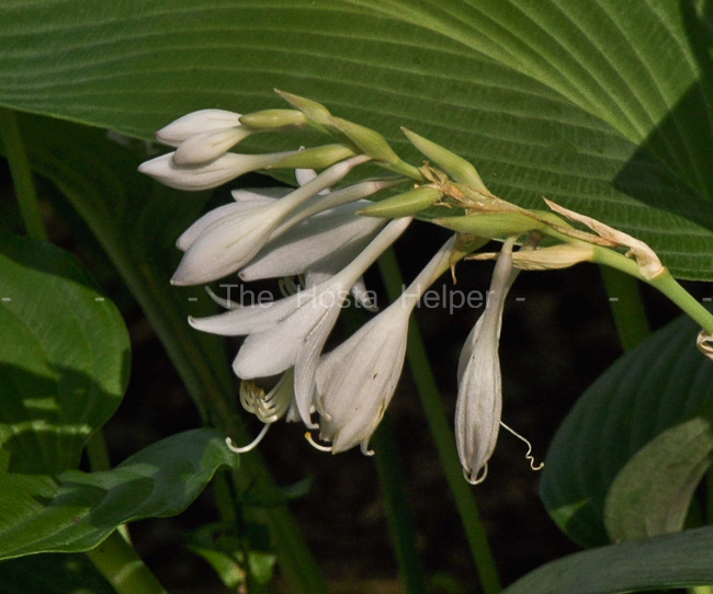 corrugated foliage with thick texture. Its flowers are funnel shaped, near white and open from mid-June into July