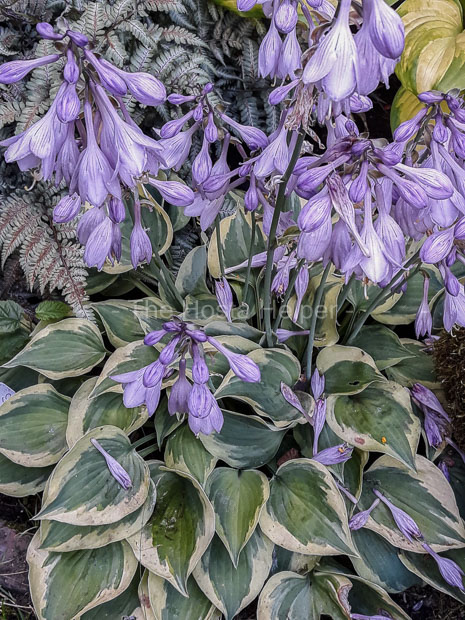 50 inches wide with wavy, ovate shaped foliage. The pale