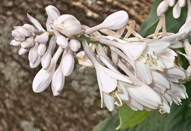 This seedling of H. 'Sagae', was registered by Dr. Charles Purtymun and Jay Hyslop of Walden West Nursery of Oregon in 1999. It forms a large size (20 inches high by 50 inches wide) mound and has a semi-upright form. The leaves are slightly cupped, wavy and corrugated with thick substance. Pale lavender flowers on tall (38 inches) scapes bloom in July.