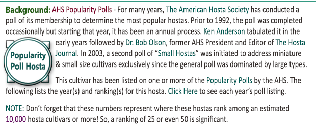 members of The American Hosta Society (see below). It was the 2006 "Hosta of the Year" by the