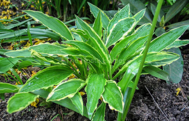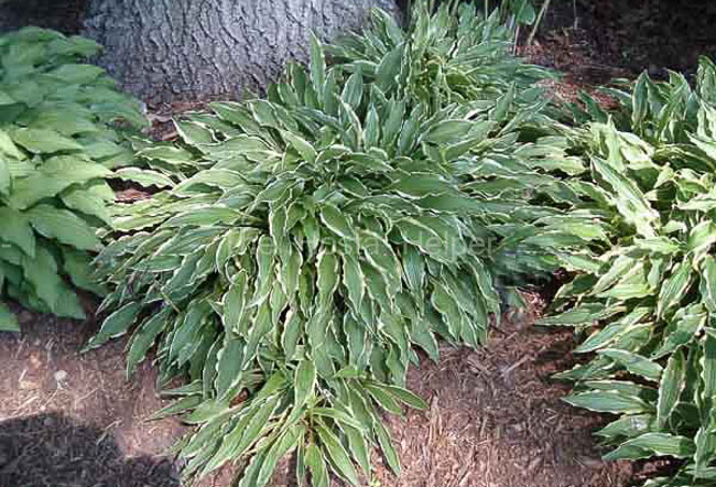 According to The Hostapedia by Mark Zilis (2009), this cultivar "...is certainly one of the most recognizable of all hostas. Planted along a pathway, it forms a dense, mini-hedge of attractively rippled, white edged foliage."