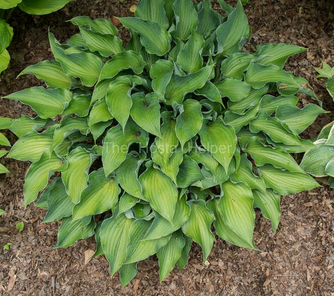 This hybrid of H. 'Frances Williams' × (H. 'Marilyn' × H. 'Tardiflora') was registered by Mark Zilis of Illinois in 2004. It forms a large size mound standing 26 inches tall by 52 inches wide. The foliage is unruly, broadly oblong to ovate, moderately corrugated, wavy and has a thick underside bloom. It bears pale lavender flowers from mid-June into July.