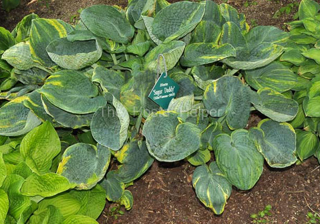 This is one of those cases where there are two hostas with the same name. One is registered and, therefore, the "official" version of H. 'Sugar Daddy' while the other is a non-registered plant and needs to be renamed to avoid further confusion.