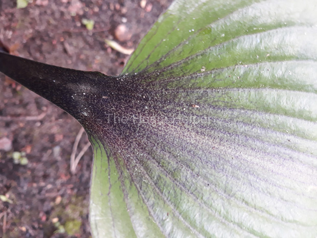 rippled, broadly ovate, slightly wavy with rich purple veins from