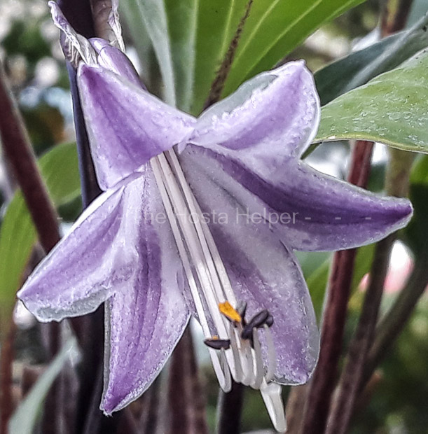 the petiole into the blade. Pale purple, tubular flowers bloom